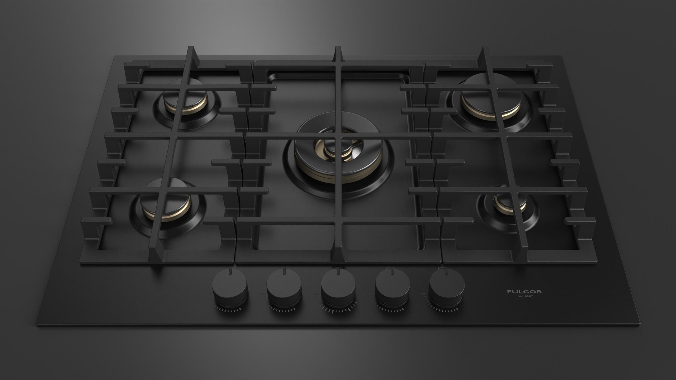 Cubierta Fulgor Milano a Gas 75 cm 5 Puestos Metal Acabado Mate Negro Urbantech MBK