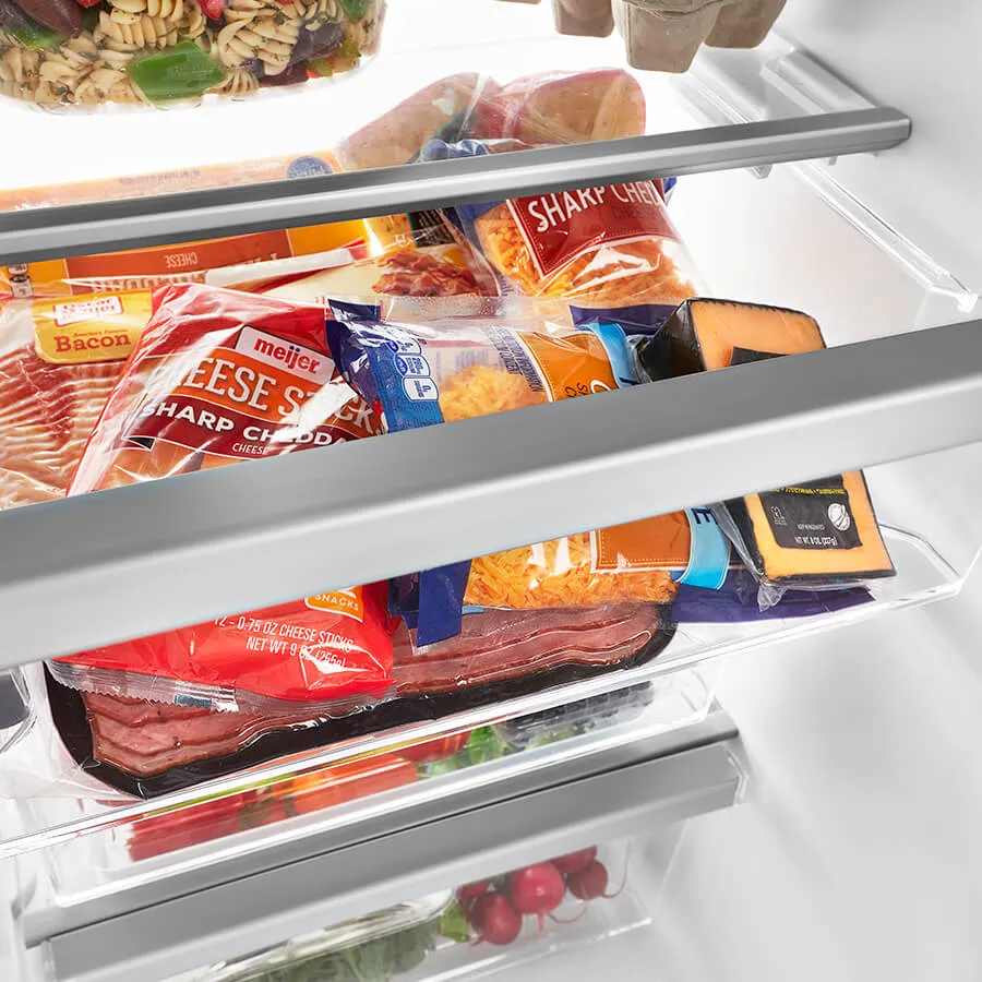 Equipada con un dispensador externo de agua y hielo filtrado EveryDrop™, controles táctiles y iluminación LED, esta nevera es ideal para quienes buscan practicidad, organización y elegancia en la cocina.