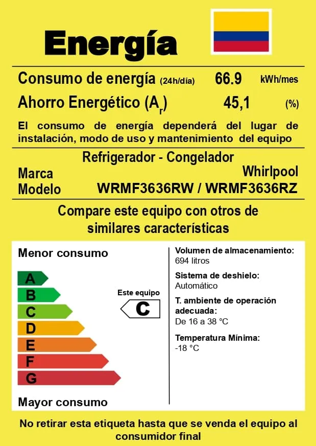 Dale a tu cocina un toque de modernidad y eficiencia con la nevera Whirlpool French Door WRMF3636RZ, diseñada para ofrecer el máximo rendimiento con un menor consumo energético. Gracias al innovador Sistema Xpert Energy Saver, que integra tres tecnologías de alto desempeño, esta nevera garantiza un ahorro de energía sin comprometer la frescura de tus alimentos.