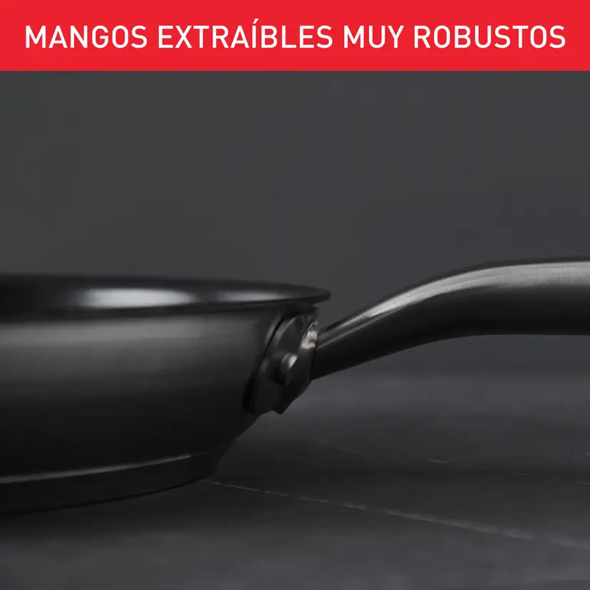 El mango de acero inoxidable remachado proporciona máxima estabilidad y resistencia, ideal para un uso intensivo. Además, esta sartén es apta para todo tipo de cocinas, incluyendo inducción, y puede pasar directamente del fogón al horno (hasta 250 °C), brindando gran versatilidad en la cocina diaria.